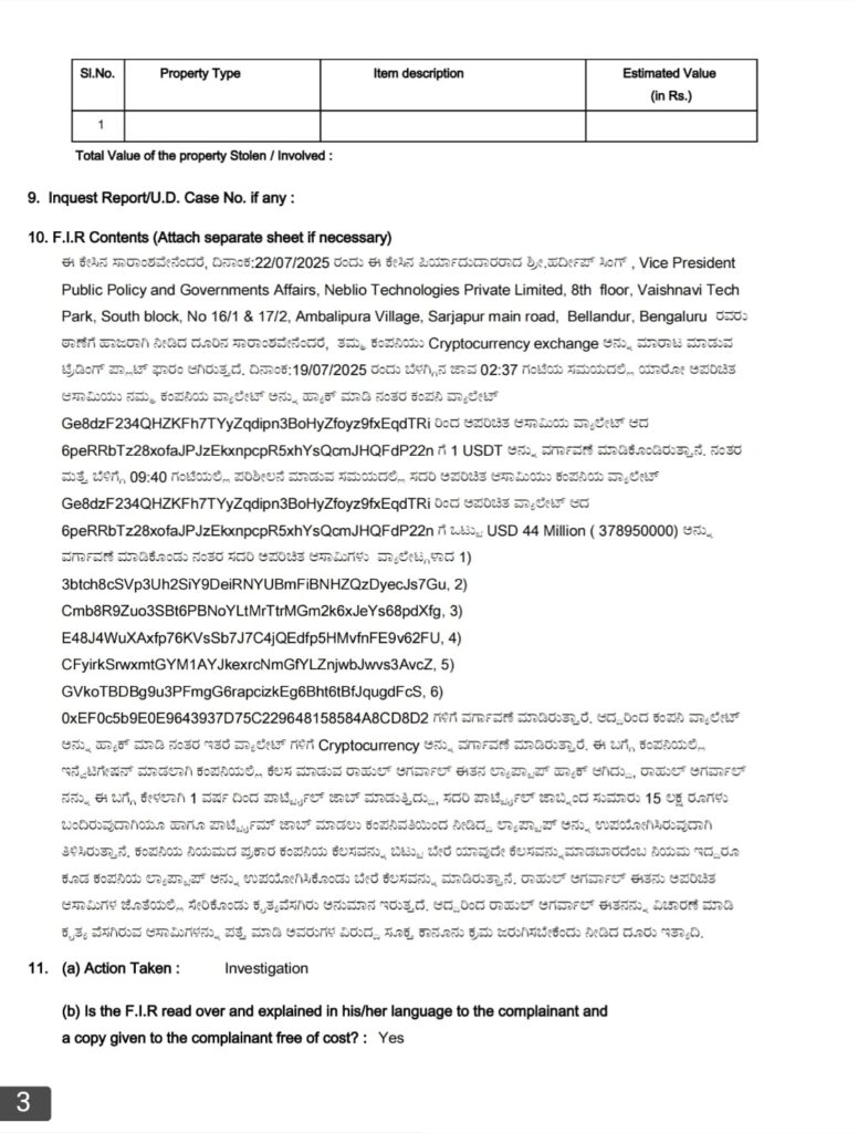ರಾಜ್ಯದಲ್ಲಿ ಅತಿದೊಡ್ಡ ಸೈಬರ್ ವಂಚನೆ ಪ್ರಕರಣ ನಡೆದಿದ್ದು, ಬೆಂಗಳೂರಿನ ಪ್ರತಿಷ್ಠಿತ ಕ್ರಿಪ್ಟೋ ಕರೆನ್ಸಿ ಕಂಪನಿ ನೆಬಿಲೋ ಟೆಕ್ನಾಲಜೀಸ್ ಅನ್ನು ವಂಚಕರು ಹ್ಯಾಕ್ ಮಾಡಿದ್ದು, ಬರೋಬ್ಬರಿ 378 ಕೋಟಿ ಎಗರಿಸಿದ್ದಾರೆ. ನೆಬಿಲೋ ಟೆಕ್ನಾಲಜೀಸ್ ಕಂಪೆನಿ ಬಗ್ಗೆ ಅನೇಕ ಜನರಿಗೆ ಗೊತ್ತಿದೆ. ಇದೊಂದು ಕ್ರಿಪ್ಟೋ ಕರೆನ್ಸಿ ಎಕ್ಸ್ ಚೇಂಜ್ ಮಾಡುವ ಕಂಪನಿಯಾಗಿದ್ದು ಇದನ್ನ ಸೈಬರ್ ವಂಚಕರು ಹ್ಯಾಕ್ ಮಾಡಿದ್ದಾರೆ. ಹ್ಯಾಕ್ ಮಾಡಿ ಬರೋಬ್ಬರಿ 378 ಕೋಟಿ ಹಣವನ್ನು ದೋಚಿದ್ದು ಸದ್ಯ ವೈಟ್ ಫೀಲ್ಡ್ ಸಿಇಎನ್ ಪೊಲೀಸ್ ಠಾಣೆಯನ್ನ ಪ್ರಕರಣ ದಾಖಲಾಗಿದೆ. ಪ್ರಕರಣದಲ್ಲಿ ಕಂಪನಿಯ ಉದ್ಯೋಗಿ ರಾಹುಲ್ ಅಗರ್ವಾಲ್ ನನ್ನು ಬಂಧಿಸಲಾಗಿದೆ. ಕಂಪನಿ ಈತನಿಗೆ ನೀಡಿದ್ದ ಲ್ಯಾಪ್ ಟಾಪ್ ಮೂಲಕವೇ ಸೈಬರ್ ವಂಚಕರು ಕಂಪನಿ ಸರ್ವರ್ ಹ್ಯಾಕ್ ಮಾಡಿ 378 ಕೋಟಿ ದೋಚಿದ್ದಾರೆ ಎಂದು ತಿಳಿದು ಬಂದಿದ್ದು, ತನಿಖೆ ಮುಂದುವರೆದಿದೆ..