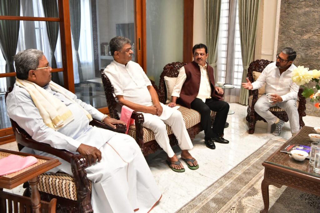 ರಾಜ್ಯ ರಾಜಕಾರಣದಲ್ಲಿ ಇವತ್ತು ಮಹತ್ವದ ಬೆಳವಣಿಗೆ ನಡೆದಿದ್ದು, ಮುಖ್ಯಮಂತ್ರಿ CM Siddaramaiah ಪಕ್ಷದ ಹಿರಿಯ ನಾಯಕರಾದ ಹರಿಪ್ರಸಾದ್ ಅವರನ್ನು ಭೇಟಿಯಾಗಿದ್ದಾರೆ. ಹರಿಪ್ರಸಾದ್ ಅವರ ನಿವಾಸಕ್ಕೆ ಆಗಮಿಸಿದ್ದ ಮುಖ್ಯಮಂತ್ರಿಗಳು ಉಪಹಾರ ಸೇವಿಸಿ ಕೆಲವು ಹೊತ್ತು ರಾಜಕೀಯ ವಿದ್ಯಮಾನಗಳ ಬಗ್ಗೆ ಚರ್ಚೆ ನಡೆಸಿ ವಾಪಸ್ ಆಗಿದ್ದಾರೆ.