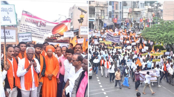 ಬೆಳಗಾವಿ, ಕೊಪ್ಪಳ, ಗದಗ-ಕಲಬುರಗಿಯಲ್ಲೂ ವಿವಿಧ ಧಾರ್ಮಿಕ ಸಂಘಟನೆಗಳು ಪ್ರತಿಭಟನೆ ನಡೆಸಿ ಧರ್ಮಸ್ಥಳದ ಮಂಜುನಾಥ ಸ್ವಾಮಿ ದೇವಸ್ಥಾನ ಹಾಗೂ ವೀರೇಂದ್ರ ಹೆಗಡೆ ಕುಟುಂಬಕ್ಕೆ ಕಳಂಕ ತರುವ ಒಳಸಂಚು ನಡೆಸಲಾಗುತ್ತಿದ್ದು, ಇದನ್ನ ನಾವು ಯಾವುದೇ ಕಾರಣಕ್ಕೂ ಸಹಿಸುವುದಿಲ್ಲ ಎಂದು ಎಚ್ಚರಿಸಿದ್ದಾರೆ. ಅಲ್ಲದೇ ಆ.20ರಂದು ಧರ್ಮಸ್ಥಳಕ್ಕೆ ಬಹತ್‌ ಜಾಥಾ ನಡೆಸುವ ಮೂಲಕ ಭಕ್ತರ ಶಕ್ತಿಪ್ರದರ್ಶನ ನಡೆಸಲಿದ್ದೇವೆ. ಈ ಕೂಡಲೇ ಧರ್ಮಸ್ಥಳ ಕ್ಷೇತ್ರವನ್ನು ಅಪವಿತ್ರಗೊಳಿಸುವ ಕೆಲಸ ನಿಲ್ಲಬೇಕು ಎಂದು ಆಗ್ರಹಿಸಿದ್ದಾರೆ.