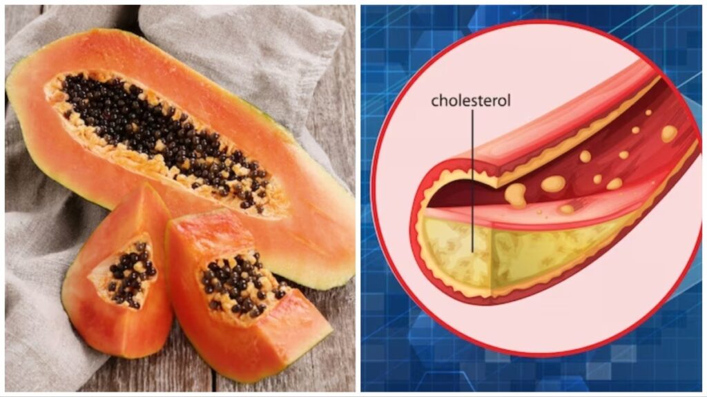 ಬೆಳಗ್ಗೆ ಖಾಲಿ ಹೊಟ್ಟೆಯಲ್ಲಿ ಪಪ್ಪಾಯಿಯನ್ನು ಸೇವಿಸುವುದರಿಂದ ದೇಹದಲ್ಲಿ ಹೆಚ್ಚುತ್ತಿರುವ ಕೊಲೆಸ್ಟ್ರಾಲ್ ಮಟ್ಟ ಕಡಿಮೆಯಾಗುತ್ತದೆ. ಯಾಕಂದ್ರೆ, ಪಪ್ಪಾಯಿಯಲ್ಲಿ ನಾರಿನಂಶವು ಸಮೃದ್ಧವಾಗಿದೆ, ಇದು ಕೆಟ್ಟ ಕೊಲೆಸ್ಟ್ರಾಲ್ಅನ್ನು ಕಡಿಮೆ ಮಾಡಲು ಸಹಾಯ ಮಾಡುವುದಲ್ಲದೇ ಹೃದಯಾಘಾತದ ಅಪಾಯವನ್ನು ಸಹ ಕಡಿಮೆ ಮಾಡುತ್ತದೆ.