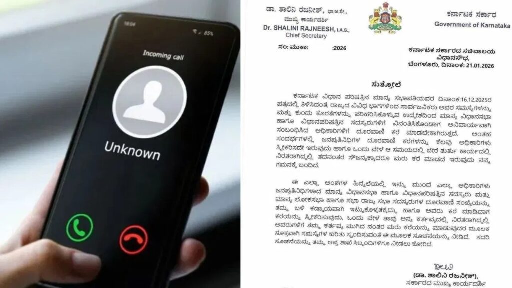ಇನ್ನು ಮುಂದೆ ಎಲ್ಲ ಸರ್ಕಾರಿ ಅಧಿಕಾರಿಗಳು ಎಂಎಲ್ಎಗಳ ಮತ್ತು ಎಂಎಲ್ಸಿಗಳ ದೂರವಾಣಿ ಕರೆಗಳನ್ನು ಸ್ವೀಕರಿಸಲೇಬೇಕು. ಒಂದು ವೇಳೆ ಕರೆ ಬಂದಾಗ ಇತರ ಕೆಲಸಗಳಲ್ಲಿ ವ್ಯಸ್ತರಾಗಿದ್ದಲ್ಲಿ, ಮರಳಿ ಕರೆ ಮಾಡಿ ಮಾತನಾಡಬೇಕು ಎಂದು ಸೂಚನೆ ನೀಡಿದ್ದಾರೆ.