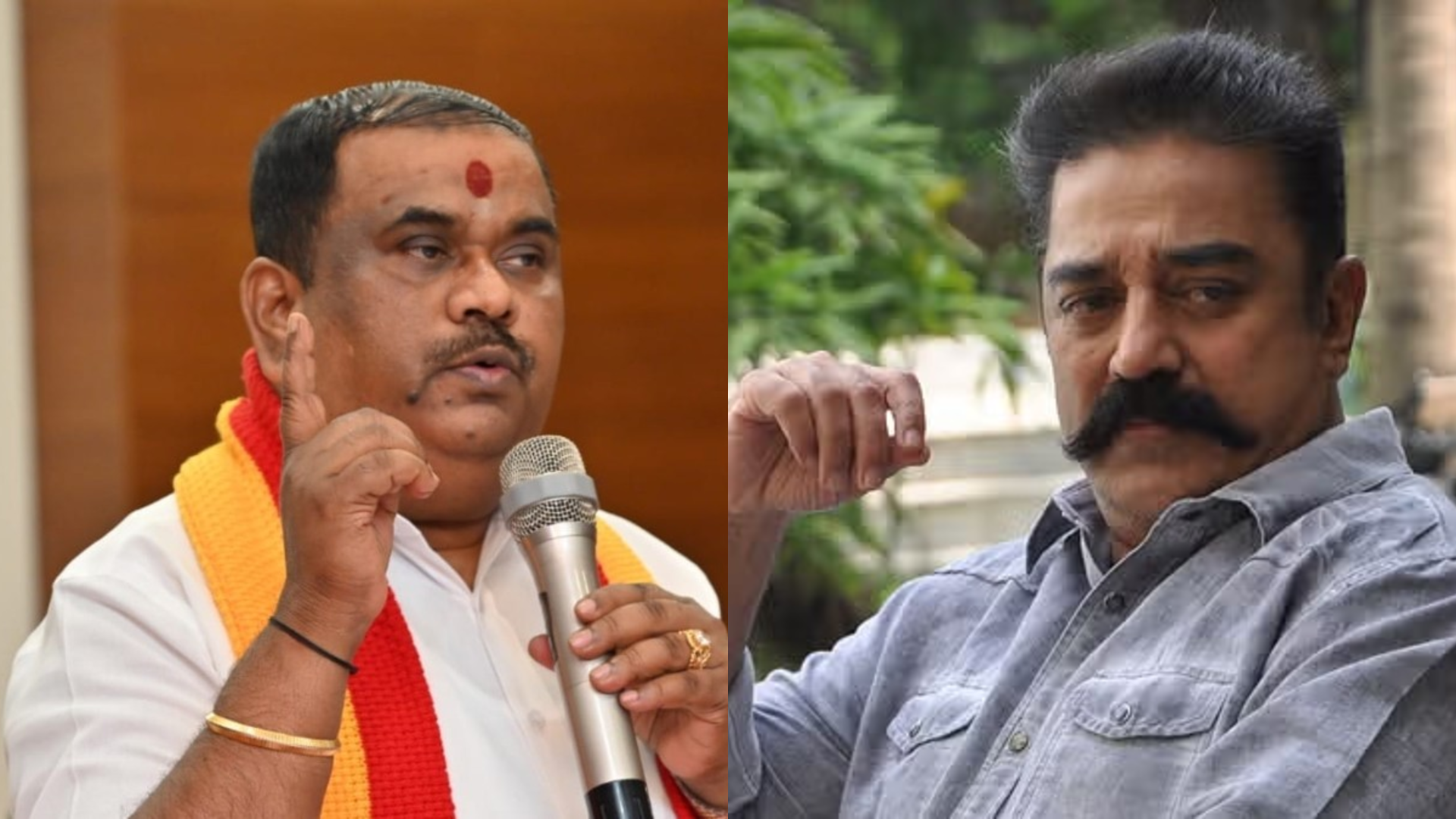ನಟ ಕಮಲ್ ಹಾಸನ್ ತಮ್ಮ ಸಿನಿಮಾದ ಕಾರ್ಯಕ್ರಮವೊಂದರಲ್ಲಿ ಕನ್ನಡದ ಬಗ್ಗೆ ಹೇಳಿಕೆ ನೀಡಿರೋ ವಿಡಿಯೋ ಸೋಷಿಯಲ್ ಮೀಡಿಯಾದಲ್ಲಿ ಸಿಕ್ಕಾಪಟ್ಟೆ ವೈರಲ್ ಆಗಿದ್ದು, ಕನ್ನಡಿಗರನ್ನ ಕೆರಳಿಸಿದೆ. ಇದಕ್ಕೆ ಕಮಲ್ ಹಾಸನ್ (kamal haasan controversy)ಕ್ಷಮೆ ಕೇಳಬೇಕು ಅಂತಾ ಕನ್ನಡಿಗರು ಹಾಗೂ ಕನ್ನಡಪರ ಸಂಘಟನೆಗಳು ಆಕ್ರೋಶ ವ್ಯಕ್ತಪಡಿಸಿದ್ದಾರೆ. ಇನ್ನು ಇದಕ್ಕೆ ಕರವೇ ಅಧ್ಯಕ್ಷರಾದ ನಾರಯಣಗೌಡರು (Narayanagowda) ಕೂಡ ಕಿಡಿಕಾರಿದ್ದಾರೆ.