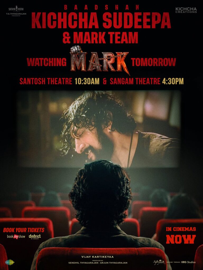 ನಟ ಕಿಚ್ಚ ಸುದೀಪ್ (Kichcha Sudeep) ಅಭಿಮಾನಿಗಳ ಜೊತೆ ಚಿತ್ರ ನೋಡಲು ನಿರ್ಧರಿಸಿದ್ದಾರೆ. ಡಿಸೆಂಬರ್ 31ರಂದು ಬೆಂಗಳೂರು ಹಾಗೂ ಮೈಸೂರಿನಲ್ಲಿ ಸುದೀಪ್ ಅಭಿಮಾನಿಗಳೊಂದಿಗೆ ‘ಮಾರ್ಕ್’ ವೀಕ್ಷಿಸಲಿದ್ದಾರೆ.
