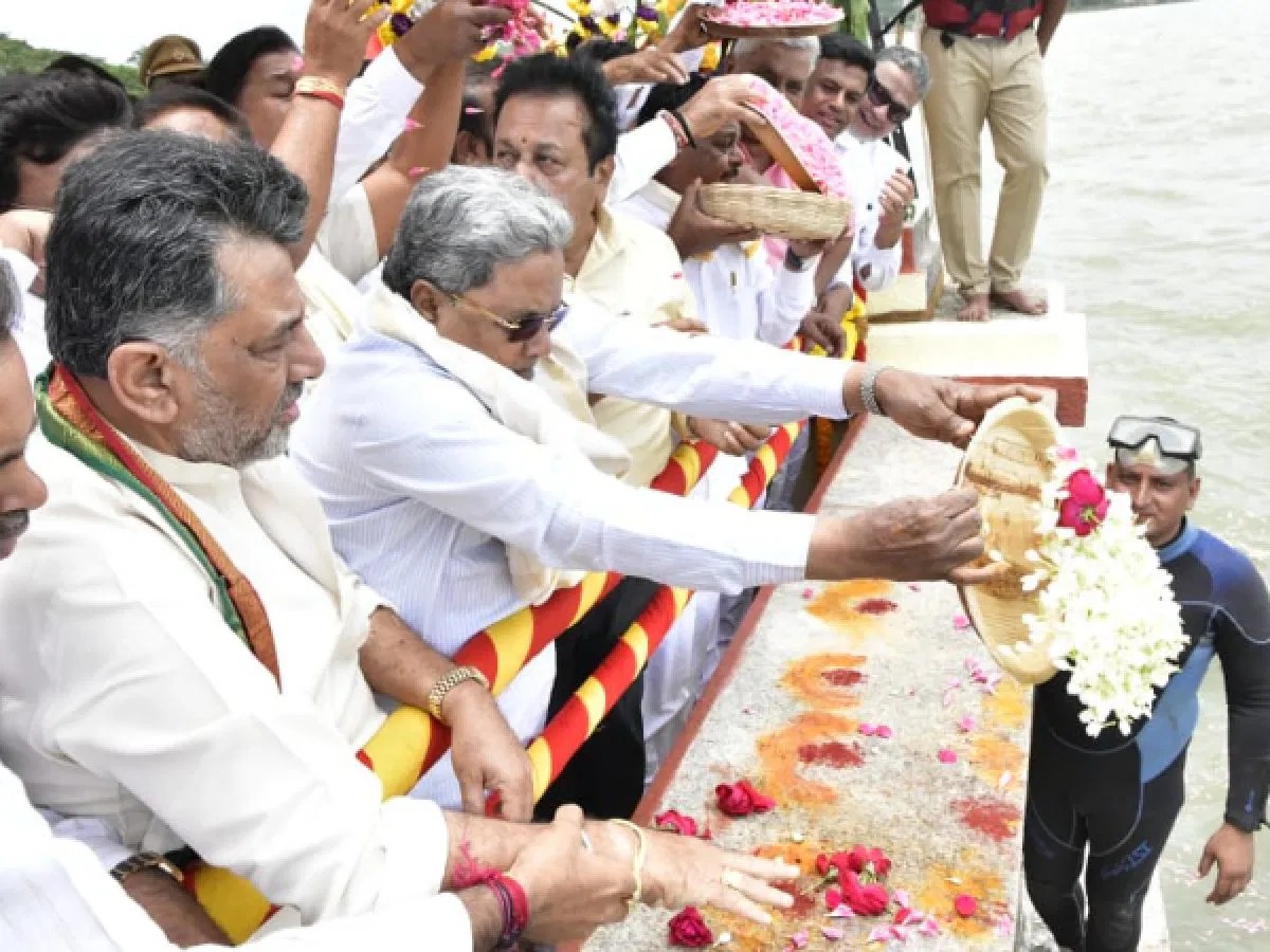 ಇಂದು ಮುಖ್ಯಮಂತ್ರಿ ಸಿದ್ದರಾಮಯ್ಯ, ಉಪಮುಖ್ಯಮಂತ್ರಿ ಡಿ.ಕೆ. ಶಿವಕುಮಾರ್ ಹಾಗೂ ಜಿಲ್ಲಾ ಉಸ್ತುವಾರಿ ಸಚಿವ ಎನ್. ಚಲುವರಾಯಸ್ವಾಮಿ ಇಂದು ಕಾವೇರಿ ಮಾತೆಗೆ ಬಾಗಿನ ಸಮರ್ಪಿಸಿದರು. ಬಳಿಕ ಸಿಎಂ ಸಿದ್ದರಾಮಯ್ಯ, ಡಿಸಿಎಂ ಡಿಕೆ ಶಿವಕುಮಾರ್ ಕಾವೇರಿ ಪ್ರತಿಮೆಗೆ ಪೂಜೆ ಸಲ್ಲಿಸಿದರು.