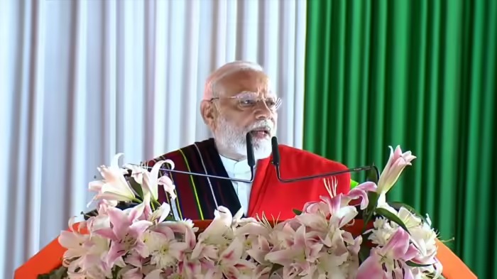 ಸಮಾರಂಭದಲ್ಲಿ ಭಾಷಣ ಮಾಡಿದ ಮೋದಿ ಜನಾಂಗೀಯ ಸಂಘರ್ಷದ ಬಗ್ಗೆ ವಿಷಾದ ವ್ಯಕ್ತಪಡಿಸಿದರು. ಮಣಿಪುರ ಈ ದೇಶಕ್ಕೆ ಪ್ರಕೃತಿ ನೀಡಿದ ವಿಶೇಷ ಕೊಡುಗೆಯಾಗಿದೆ. ಮಣಿಪುರ ರಾಜ್ಯದ ಹೆಸರಿನಲ್ಲೇ ಮಣಿ ಇದೆ. ಈ ರಾಜ್ಯ ಮುಂಬರುವ ದಿನಗಳಲ್ಲಿ ಸಮಸ್ತ ಈಶಾನ್ಯ ಭಾರತದ ಭಾಗ್ಯ ಬದಲಿಸುವ ಶಕ್ತಿಯಾಗಲಿದೆ ಎಂದು ಕೊಂಡಾಡಿದರು. ತಮ್ಮ ಭಾಷಣದಲ್ಲಿ ಮಣಿಪುರ ಹಿಂಸಾಚಾರವನ್ನು ಉಲ್ಲೇಖಿಸಿದರು. ಕಳೆದ ಎರಡು ವರ್ಷಗಳಿಂದ ಭೀಕರ ಹಿಂಸಾಚಾರದಿಂದ ನಲುಗಿದ್ದ ರಾಜ್ಯ ಈಗ ಶಾಂತಿಯ ಪಥದಲ್ಲಿ ಮುನ್ನಡೆಯುತ್ತಿದೆ ಎಂದು ಹೇಳಿದರು. ಮಣಿಪುರದ ಎಲ್ಲಾ ಜನಾಂಗೀಯ ಸಂಘಟನೆಗಳು ಪರಸ್ಪರ ದ್ವೇಷ ಭಾವನೆಯನ್ನು ತೊರೆದು, ರಾಜ್ಯದ ಸರ್ವಾಂಗೀಣ ಅಭಿವೃದ್ಧಿಗಾಗಿ ಒಟ್ಟಾಗಬೇಕು. ಪರಸ್ಪರ ಗೌರವ ಮತ್ತು ನಂಬಿಕೆಯ ಆಧಾರದ ಮೇಲೆ ಹೊಸ ಭವಿಷ್ಯ ಕಟ್ಟುವಲ್ಲಿ ಎಲ್ಲರೂ ಶ್ರಮಿಸಬೇಕು ಎಂದು ಪಧಾನಿ ಮೋದಿ ಕರೆ ನೀಡಿದರು.