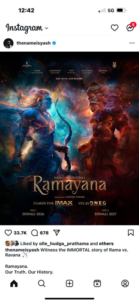 ರಾಮಾಯಣ ಫಸ್ಟ್‌ ಟೈಟಲ್‌ ಟೀಸರ್‌ ಅನ್ನು ರಾಕಿಂಗ್‌ ಸ್ಟಾರ್‌ ಯಶ್‌ ತಮ್ಮ ಎಕ್ಸ್‌ ಖಾತೆಯಲ್ಲಿ ಹಂಚಿಕೊಂಡಿದ್ದಾರೆ. ಹತ್ತು ವರ್ಷಗಳ ಆಕಾಂಕ್ಷೆ. ಸಾರ್ವಕಾಲಿಕ ಶ್ರೇಷ್ಠ ಮಹಾಕಾವ್ಯವನ್ನು ಜಗತ್ತಿಗೆ ತರುವ ನಿರಂತರ ದೃಢನಿಶ್ಚಯ.
