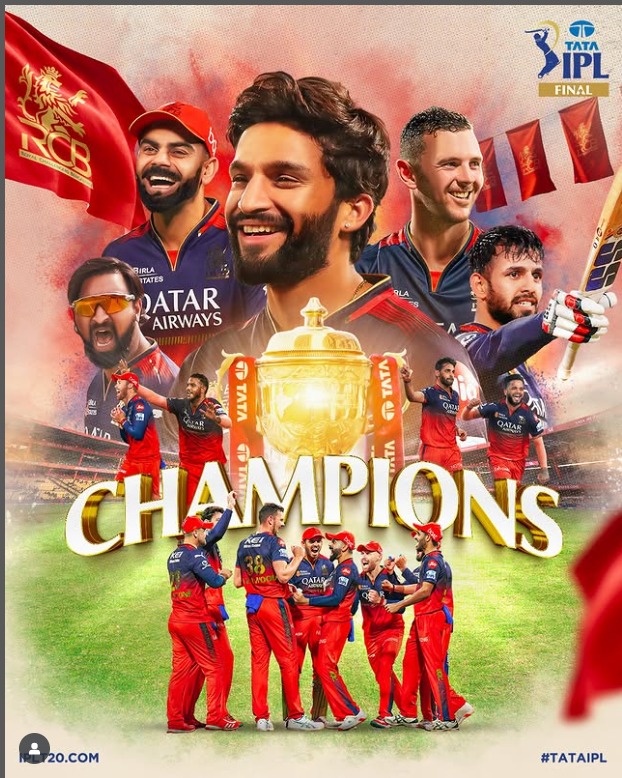 ಐಪಿಎಲ್ 2025 ಬಹು ನಿರೀಕ್ಷಿತ ಫೈನಲ್ ಮ್ಯಾಚ್ನಲ್ಲಿ ಆರ್ಸಿಬಿ ಭರ್ಜರಿ ಜಯ ಸಾಧಿಸಿದೆ. ಅಹ್ಮದಾಬಾದ್ನ ನರೇಂದ್ರ ಮೋದಿ ಕ್ರೀಡಾಂಗಣದಲ್ಲಿ ನಡೆದ ಫೈನಲ್ ಪಂದ್ಯದಲ್ಲಿ ಪಂಜಾಬ್ ವಿರುದ್ಧ ಭರ್ಜರಿ ಜಯ ಸಾಧಿಸಿದೆ.