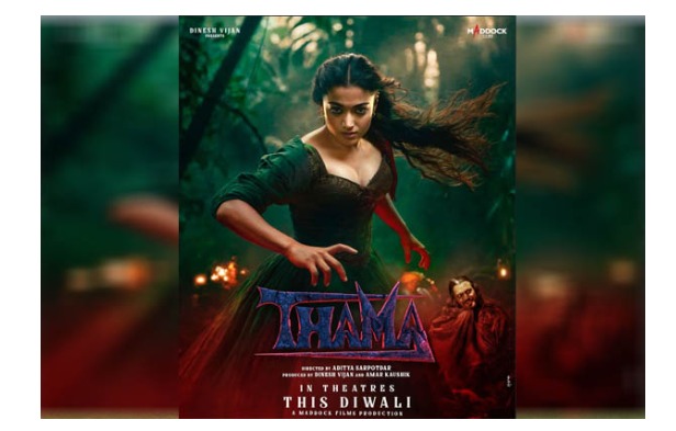 ದೀಪಾವಳಿಗೆ ಧಮಾಕ ಮಾಡಲು ಬರ್ತಿದೆ ರಶ್ಮಿಕಾ ಮಂದಣ್ಣ ಅಭಿನಯದ ಹಾರರ್-ಕಾಮಿಡಿ-ಥ್ರಿಲ್ಲರ್ ಜಾನರ್ನ ಥಮಾ. ಸ್ಯಾಂಡಲ್ವುಡ್ ಬೆಡಗಿ ಟಾಲಿವುಡ್ ಜಿಗಿದು ಪುಪ್ಪದಲ್ಲಿ ಶ್ರೀವಲ್ಲಿ ಮೂಲಕ ನ್ಯಾಷನಲ್ ಕ್ರಶ್ ಆಗಿ ಮಿಂಚಿ, ಬಾಲಿವುಡ್ನಲ್ಲಿ ಆನಿಮಲ್ ಮೂಲಕ ಹಿಟ್ ಹಿರೋಯಿನ್ ಆಗಿ, ಬಾಲಿವುಡ್ನಲ್ಲೂ ಹಿಟ್ ಸಿನಿಮಾಗಳನ್ನೆ ನೀಡಿರೋ ನಟಿ ಈಗ ಹಾರರ್ ಮೂವೀ ಮೂಲಕ ತೆರೆ ಮೇಲೆ ಬರಲು ಸಜ್ಜಾಗಿದ್ದಾರೆ. ರೋಮ್ಯಾಂಟಿಕ್ ಮೂವಿಗಳಲ್ಲಿ ಕಾಣಿಸಿಕೊಂಡ ಶ್ರೀವಲ್ಲಿ ಮೊದಲ ಬಾರಿಗೆ, ಹಾರರ್ ಸಿನಿಮಾದಲ್ಲಿ ಬಣ್ಣ ಹಚ್ಚಿದ್ದಾರೆ. ಥಮಾದಲ್ಲಿ ರಶ್ಮಿಕಾ ಮಂದಣ್ಣ, ಡಿಫರೆಂಟ್ ಲುಕ್ ಮೂಲಕ ಕಾಣಿಸಿಕೊಂಡಿದ್ದಾರೆ.