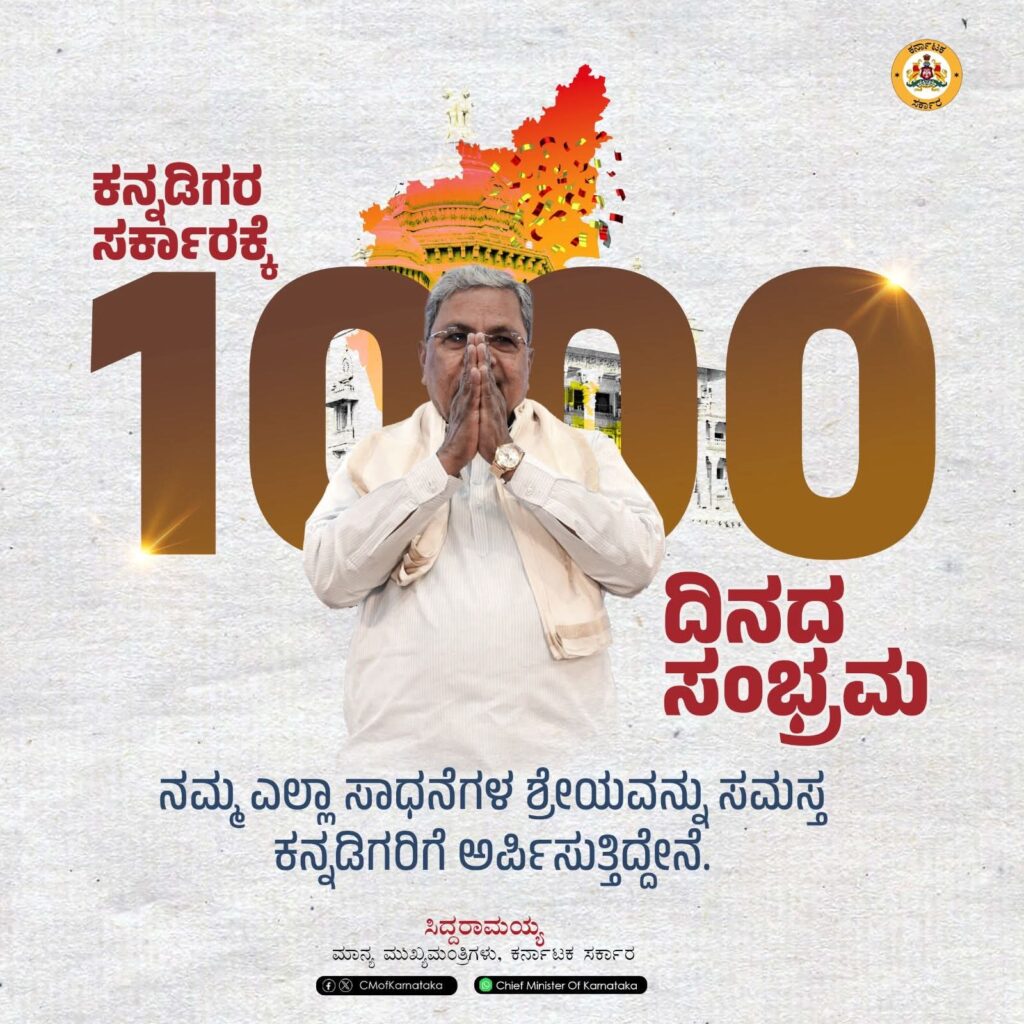 ರಾಜ್ಯದಲ್ಲಿ ಆಡಳಿತ ನಡೆಸುತ್ತಿರುವ ಸಿಎಂ ಸಿದ್ದರಾಮಯ್ಯ ನೇತೃತ್ವದ ಕಾಂಗ್ರೆಸ್ ಸರ್ಕಾರ 1 ಸಾವಿರ ದಿನ ಪೂರೈಸುವ ಮೂಲಕ ಹೊಸ ಸಾಧನೆಗೆ ಪಾತ್ರವಾಗಿದೆ. ನುಡಿದಂತೆ ನಡೆದ ರಾಜ್ಯ ಕಾಂಗ್ರೆಸ್ ಸರ್ಕಾರದ ಕಾರ್ಯವೈಖರಿಗೆ ಜನರು ಬಹುಪರಾಕ್ ಎಂದಿದ್ದಾರೆ. ಹೌದು. 2023ರ ವಿಧಾನಸಭೆ ಚುನಾವಣೆಯಲ್ಲಿ ಕಾಂಗ್ರೆಸ್ ಪಕ್ಷ ಎಲ್ಲರ ಹುಬ್ಬೇರುವಂತೆ ಮಾಡಿತ್ತು.. ಆಡಳಿತ ಪಕ್ಷದ ಅಲೆಯ ನಡುವೆಯೂ ಬರೋಬ್ಬರಿ 135 ಸ್ಥಾನಗಳನ್ನು ಗೆದ್ದು ತನ್ನ ಪರಾಕ್ರಮವನ್ನು ಸಾಬೀತು ಮಾಡಿತ್ತು.. ಇದು ಹಿಂದೆಂದೂ ಕಾಣದ ಅತಿದೊಡ್ಡ ಗೆಲುವಾಗಿತ್ತು.. ನುಡಿದಂತೆ ನಡೆಯಲೇಬೇಕೆಂಬ ಛಲದಿಂದ ಅಧಿಕಾರಕ್ಕೆ ಬಂದ ಮೊದಲ ದಿನದಿಂದಲೇ ಗ್ಯಾರಂಟಿ ಯೋಜನೆಗಳಿಗೆ ಚಾಲನೆ ನೀಡಿತ್ತು.. ಸಿಎಂ ಸಿದ್ದರಾಮಯ್ಯನವರು ಅಧಿಕಾರ ಸ್ವೀಕರಿಸಿದ ಮೊದಲ ದಿನವೇ ಗ್ಯಾರಂಟಿ ಯೋಜನೆಗಳನ್ನು ಅನುಷ್ಠಾನಗೊಳಿಸಲು ಪಣ ತೊಟ್ಟರು. ಸರ್ಕಾರ ಆಡಳಿತಕ್ಕೆ ಬಂದ ಕೇವಲ 6 ತಿಂಗಳಲ್ಲೇ ಐದು ಗ್ಯಾರಂಟಿಗಳನ್ನೂ ಅನುಷ್ಠಾನಗೊಳಿಸಿ ಜನ ಮನ್ನಣೆ ಗಳಿಸುವಲ್ಲಿ ಯಶಸ್ವಿಯಾಯಿತು.