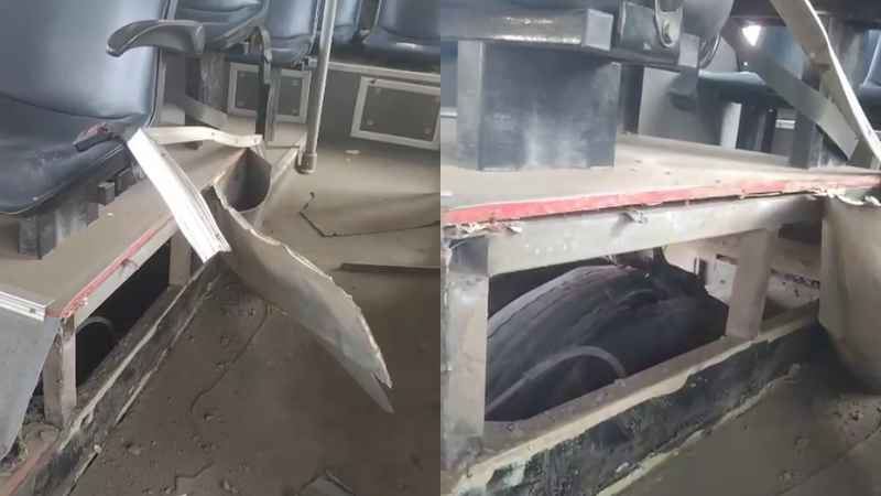 ಈ ಘಟನೆ ನಗರದ ಸಿಂಗಸಂದ್ರದಲ್ಲಿ ನಡೆದಿದೆ. ಬಿಎಂಟಿಸಿ ಬಸ್ ಇಂದು ಬೆಳಗ್ಗೆ ಅತ್ತಿಬೆಲೆಯಿಂದ ಮೆಜೆಸ್ಟಿಕ್ ಕಡೆ ಹೋಗುತ್ತಿತ್ತು. ಆ ಸಂದರ್ಭದಲ್ಲಿ ಬಸ್ ನ ಟೈರ್ ಸ್ಫೋಟಗೊಂಡಿದೆ. ಇದರಿಂದ ಬಸ್ನ ಟೈರ್ ಬಳಿಯ ಸೀಟ್ಗೂ ಹಾನಿಯಾಗಿದೆ. ಅಲ್ಲದೇ ಕೆಳಭಾಗದಲ್ಲಿ ಬಸ್ ಸಂಪೂರ್ಣವಾಗಿ ಛಿದ್ರಗೊಂಡಿದೆ. ಕೂದಲೆಳೆ ಅಂತರದಲ್ಲಿ ಭಾರೀ ಅನಾಹುತ ತಪ್ಪಿದಂತಾಗಿದೆ. ಸ್ಫೋಟದಿಂದ ಉಂಟಾದ ಶಬ್ದದಿಂದಾಗಿ ಜನರು ಬೆಚ್ಚಿಬಿದ್ದಿದ್ದಾರೆ. ಅದೃಷ್ಟವಶಾತ್ ಯಾವುದೇ ಪ್ರಾಣಪಾಯ ಸಂಭವಿಸಿಲ್ಲ.