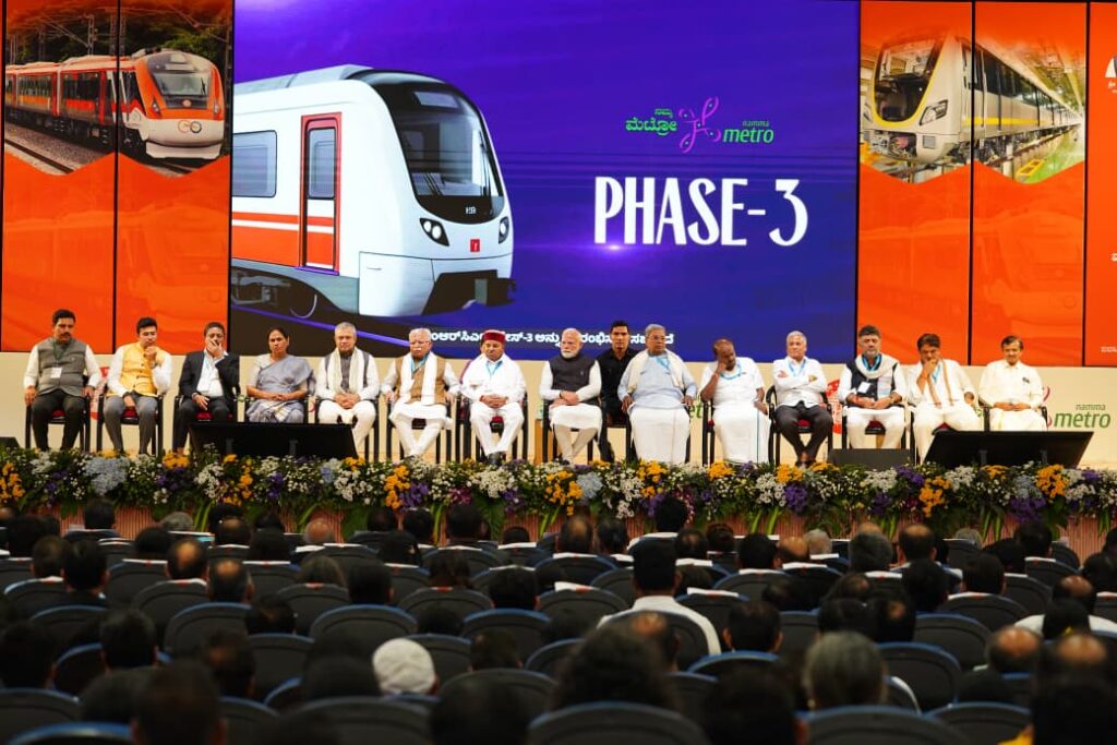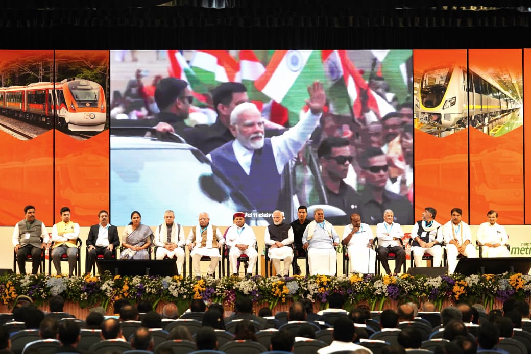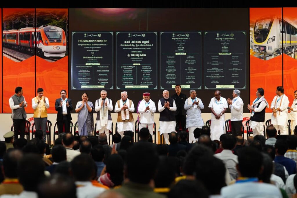 ಮೋದಿಯವರ ಎಡ-ಬಲದಲ್ಲಿ ಸಿಎಂ-ಡಿಸಿಎಂ ಕುಳಿತು ಪ್ರಯಾಣಿಸಿದ್ದಲ್ಲದೆ ಕೇಂದ್ರ ಸಚಿವರಾದ ಎಚ್.ಡಿ. ಕುಮಾರಸ್ವಾಮಿ, ಮನೋಹರ್ಲಾಲ್ ಖಟ್ಟರ್, ಅಶ್ವನಿ ವೈಷ್ಣವ್ ಪ್ರಲ್ಹಾದ್ ಜೋಷಿ, ವಿ. ಸೋಮಣ್ಣ, ಶೋಭಾ ಕರಂದ್ಲಾಜೆ, ಸಂಸದರಾದ ಡಾ. ಮಂಜುನಾಥ್, ತೇಜಸ್ವಿ ಸೂರ್ಯ ಸೇರಿದಂತೆ ನಾಯಕರು ಪಕ್ಷ ಬೇಧ ಮರೆತು ಬೆರೆತಿದ್ದು ವಿಶೇಷವಾಗಿತ್ತು. ಬಳಿಕ ನಡೆದ ಕಾರ್ಯಕ್ರಮದಲ್ಲಿ 15,611 ಕೋಟಿ ರೂಪಾಯಿ ವೆಚ್ಚದ ಮೆಟ್ರೋ ಮೂರನೆ ಹಂತದ ಯೋಜನೆಗೂ ಶಂಕುಸ್ಥಾಪನೆ ನೆರವೇರಿಸಿದ್ರು. ಇದಲ್ಲದೆ ಇಂಟರ್ನ್ಯಾಷನಲ್ ಇನ್ಸ್ಟಿಟ್ಯೂಟ್ ಆಫ್ ಇನ್ಫಾರ್ಮೇಷನ್ ಟೆಕ್ನಾಲಜಿ ಕ್ಯಾಂಪಸ್ನ ಕಾರ್ಯಕ್ರಮದಲ್ಲಿ ಭಾಗಿಯಾದ್ರು.