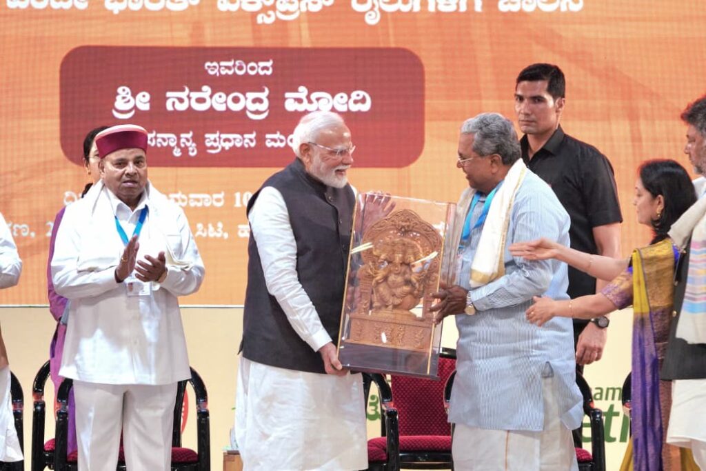 ಪ್ರಧಾನಿ ಮೋದಿ, ರಾಜ್ಯಪಾಲರು, ಸಿಎಂ ಹಾಗೂ ಕೇಂದ್ರ ಸಚಿವರು ಸೇರಿದಂತೆ ಹಲವು ಗಣ್ಯರ ಸಮ್ಮುಖದಲ್ಲಿ 3 ವಂದೇ ಭಾರತ್ ರೈಲುಗಳಿಗೆ ಚಾಲನೆ ನೀಡಿದ್ರು. ಬೆಂಗಳೂರು-ಬೆಳಗಾವಿ, ಅಮೃತಸರ- ಶ್ರೀ ಮಾತಾ ವೈಷ್ಣೋದೇವಿ ಕತ್ರಾ, ನಾಗಪುರ-ಪುಣೆ ಈ ಮೂರು ಮಾರ್ಗಗಳಲ್ಲಿ ಸಂಚರಿಸುವ ವಂದೇ ಭಾರತ್ ರೈಲುಗಳಿಗೆ ಹಸಿರು ನಿಶಾನೆ ತೋರಿದ್ರು. ಅಲ್ಲಿದ್ದ ಪುಟಾಣಿಗಳೊಂದಿಗೆ ಆತ್ಮೀಯವಾಗಿ ಮಾತುಕತೆ ನಡೆಸಿ ಪ್ರೀತಿ ತೋರಿಸಿದ್ರು.